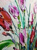 Instead of a bouquet of flowers for Mother's Day, gift your mother this exquisite painting. Called Mother's Tulips, this piece is both vibrant and thoughtful.