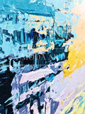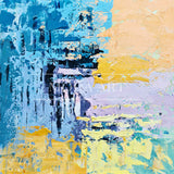 Stay out of the rain by sheltering in the Rainy Sidewalk. Done with oil on canvas, this abstract piece is both thoughtful and serene.