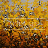 Autumn Gold (Set) is a collection comprising of three paintings. The collection depicts swallows resting on the boughs of trees turning gold. This collection is a Moda Art favourite.