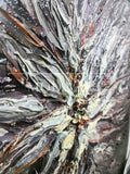 Silver Koi IV is a strong impressionist piece. Done with oil on canvas, this painting features heavy texture and a dynamic colour combination that will be ideal as a feature piece for your foyer or living room.