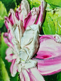 In the foreground, a sole waterlily. In full bloom, it captures the attention of all eyes, to the exclusion of the green foliage in the background. Waterlily is a modern, feminine piece, done with oil on canvas.