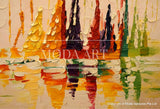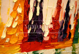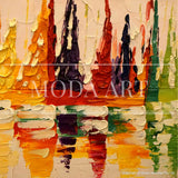 Reflections by the Bay is a piece depicting yachts docked in a marina. This piece relies solely on the texture of the oil paint and the stroke of the palette knife to bring to life a piece resplendent with vibrancy.