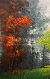 Mystical Forest is a set of three paintings. Two pieces lush with green, exude a charming calm that would sooth the savagest of beasts, whilst the center piece, captivates with a flaming red. Place this in your office or work space to manage the stresses and fatigue of work.