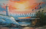 Lighthouse at Dusk is a beautifully executed landscape piece that brings the breeze of the seaside and the evening dusk into your living room.
