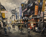 Trishaws on the Street is a vivid piece featuring two trishaws plying the street alongside pedestrians and automobiles. Done with oil on canvas, this piece is a perfect piece to adorn your office foyer.