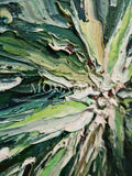 Green Koi is a striking piece. Done with oil on canvas, this emerald beauty will captivate your imagination on a daily basis.