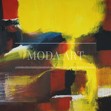 Evening Light is a yellow brown mix of abstract emotions, reminiscent of an evening sunset. Done with acrylic on canvas by Singaporean artist M. Mahat.