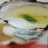 Natural Stone is an artistic rendition of mineral inclusions in a megalithic stone block. Green, yellow, and red against white hardened marble, this artwork is a mix of geology and paint. Done by Singaporean artist M. Mahat.